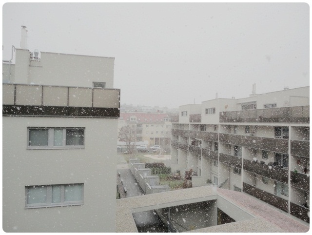 It’s also finally snowing in Vienna. I’m not sure if I’m happy about it or not. I prefer summer or warm spring/fall, but at least snow is better than rain. The biggest problem here is taht with rain or snow nearlly always comes storms. And the wind is always very cold! In foresight of the cold season I bought a new really warm and cuddly winter jacket last week, so I hope I can make it through this winter without being cold.