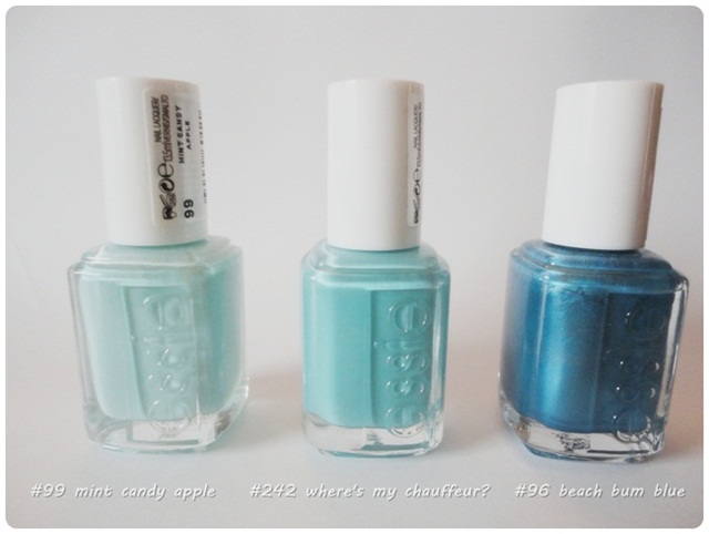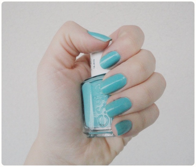 Here you can see a comparison to other standard turquoise essie colors, it’s a little bit darker and more blue-ish than mint candy apple.